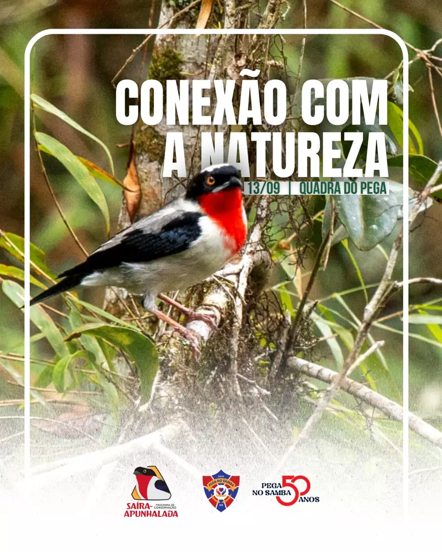 No dia 13 de setembro, às 9h, a Ala Infantil do Pega tem um encontro muito especial na nossa quadra. Vamos realizar uma roda de conversa leve e interativa para apresentar às crianças a saíra-apunhalada, uma ave rara e símbolo da Mata Atlântica capixaba.