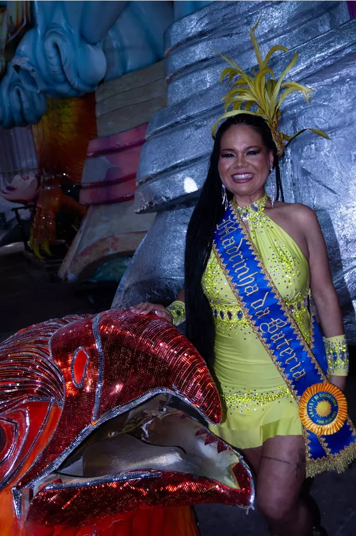 Mesmo sem experiência prévia com moda, encontrou no samba e na valorização da mulher sambista o espaço para brilhar com autenticidade e força. Participa ativamente da comunidade, dos ensaios e dos eventos, representando a escola com orgulho e entrega total.