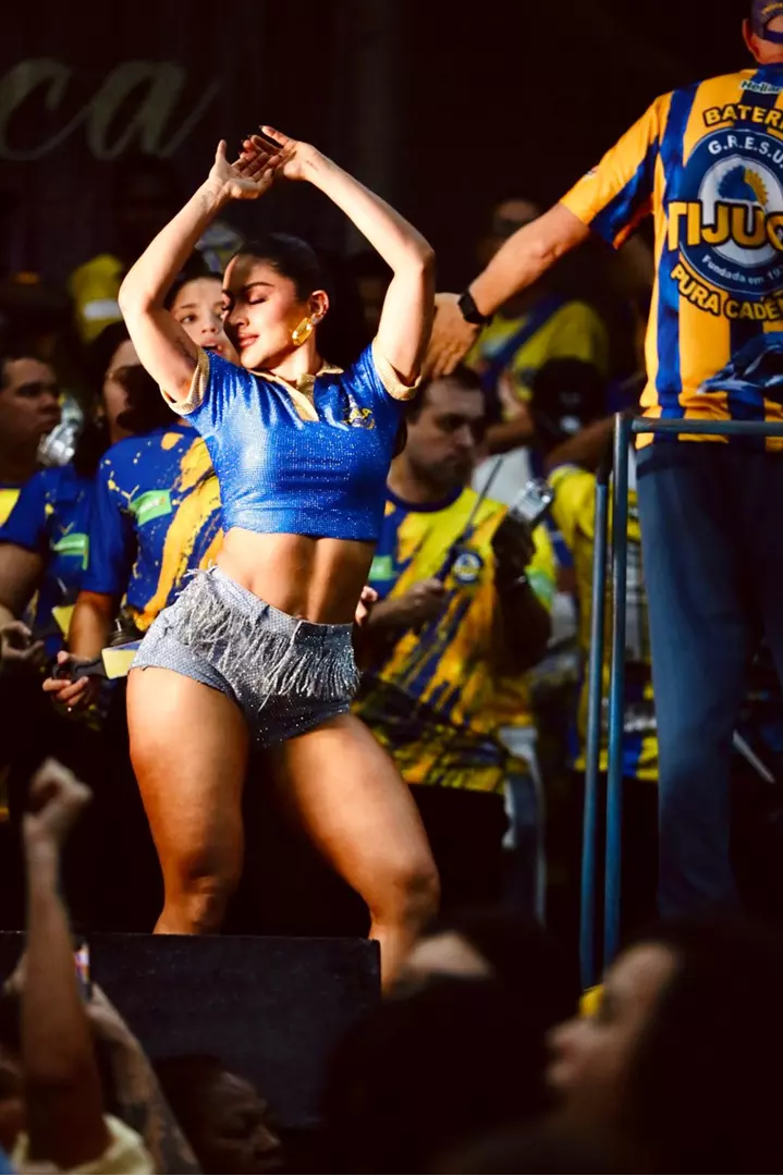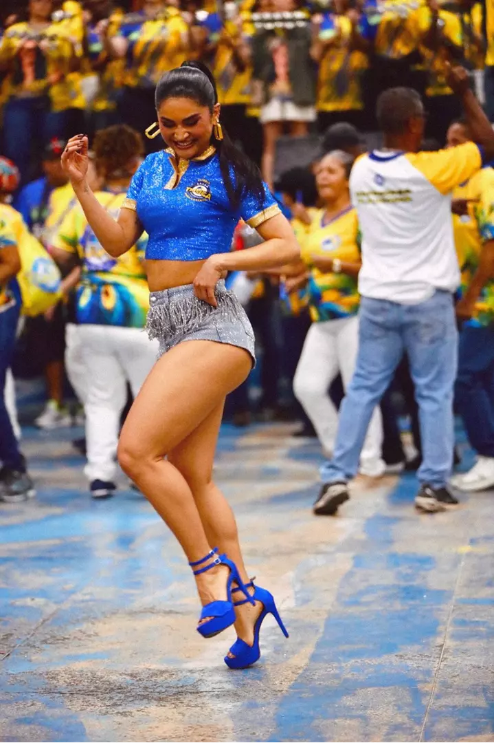 Usando uma blusa cravejada de cristais nas cores da agremiação e um short que realçava suas curvas impecáveis, a influenciadora não se destacou apenas pela beleza. Mileide mostrou muito samba no pé, contagiando a plateia e levando a comunidade tijucana ao delírio durante sua apresentação.